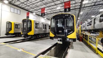 With a dramatic sound-and-light show including pulsating LEDs, music, videos and puffs of smoke in a darkened theater setting, officers of Hitachi Rail cut the ribbon Monday, Sept. 8, on…