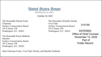 18 U.S. Senators—evenly split between Republicans and Democrats—from agricultural-producer states sent a letter to the Surface Transportation Board urging “a rigorous and comprehensive evaluation” of the proposed Union Pacific-Norfolk Southern…