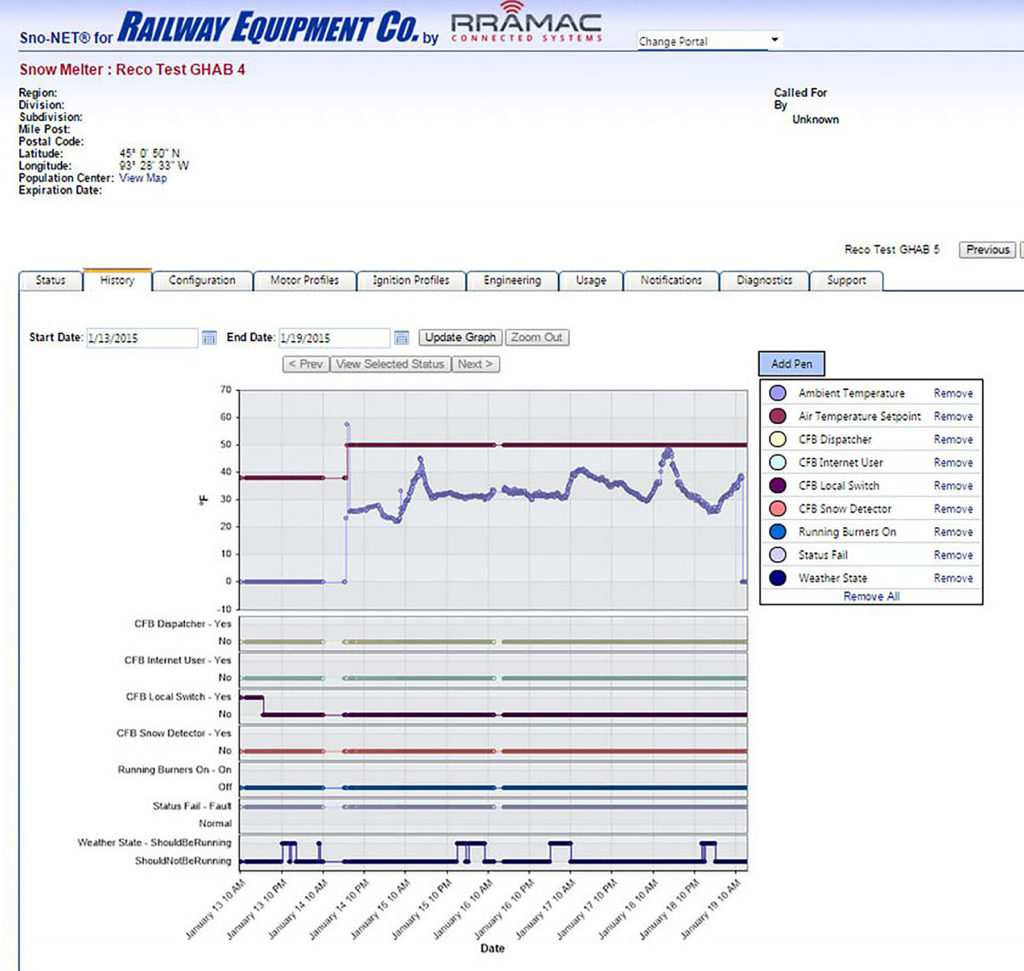 RECO’s Rail-NET™ is described as “a remote monitoring system to collect and circulate pertinent asset operating data to the right personnel at the right time. Railroad defined data is collected via RECO’s various interface modules that monitor a variety of analog and digital inputs. Data is then transmitted to a secure online portal for processing and accessibility. The portal allows the user to customize the data presentation, as well as when an alert should be sent out and to whom. Customization of asset tracking and alerts are sent whenever an asset is operating outside normal parameters. Railroads can remotely determine the status of their equipment and prioritize their responses to better utilize their maintenance resources. With remote monitoring, a site visit is no longer needed to determine the problem. Instead, information provided through remote monitoring ensures the maintenance personnel are equipped to correct the situation before traveling to the asset.”