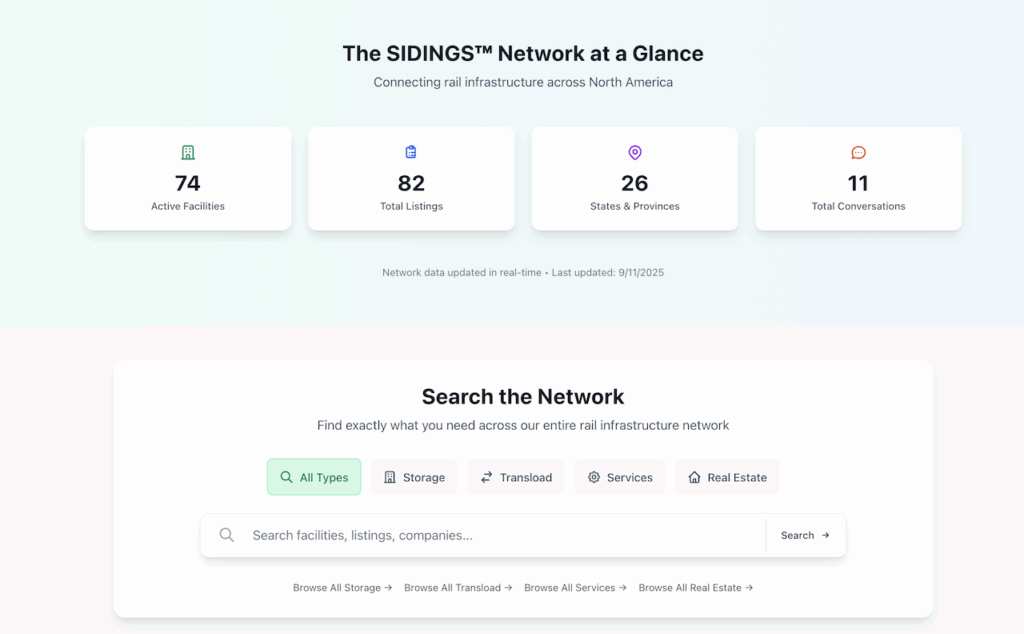 Beyond discovery, SIDINGS™ “enables direct communication between shippers, facilities and service providers—building a connected industry network that grows stronger with every new participant,” Standard Rail said.