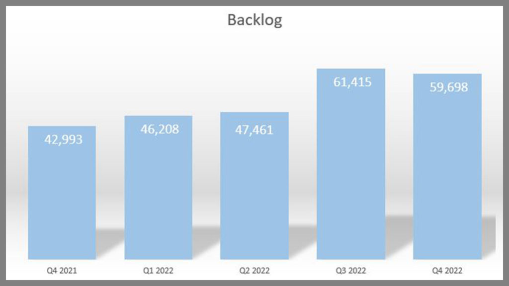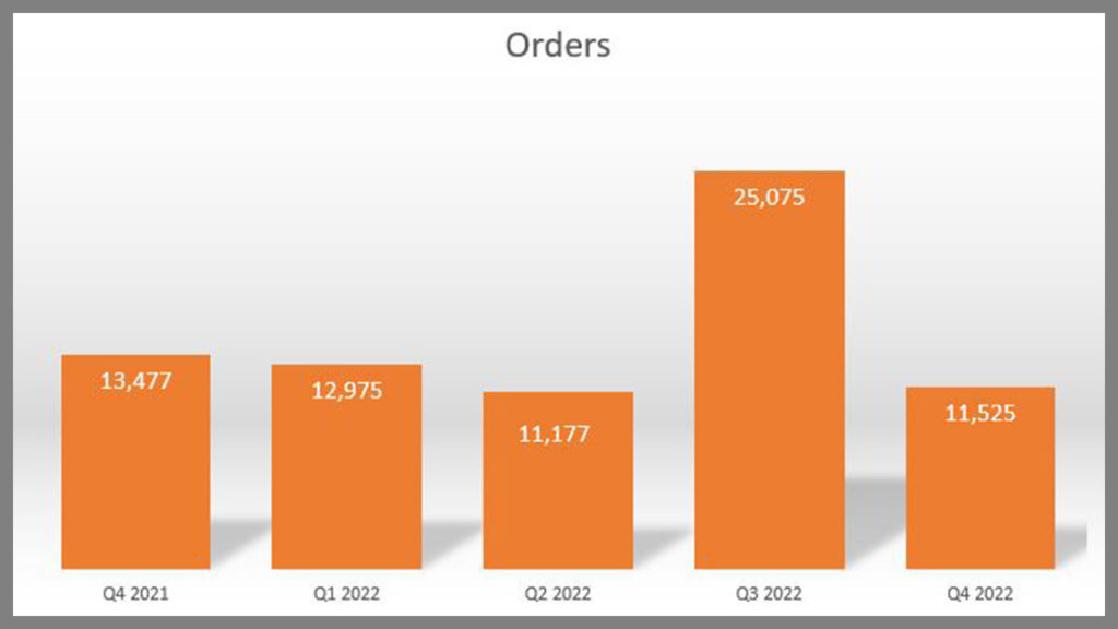 The full-year comparison shows that overall orders in 2022 increased 60% compared to 2021, but well below 2018’s more-than 77,000 units. Orders took a steep dive in 2019, and plummeted even further in 2020, the peak year for COVID-19, before recovering in 2021.