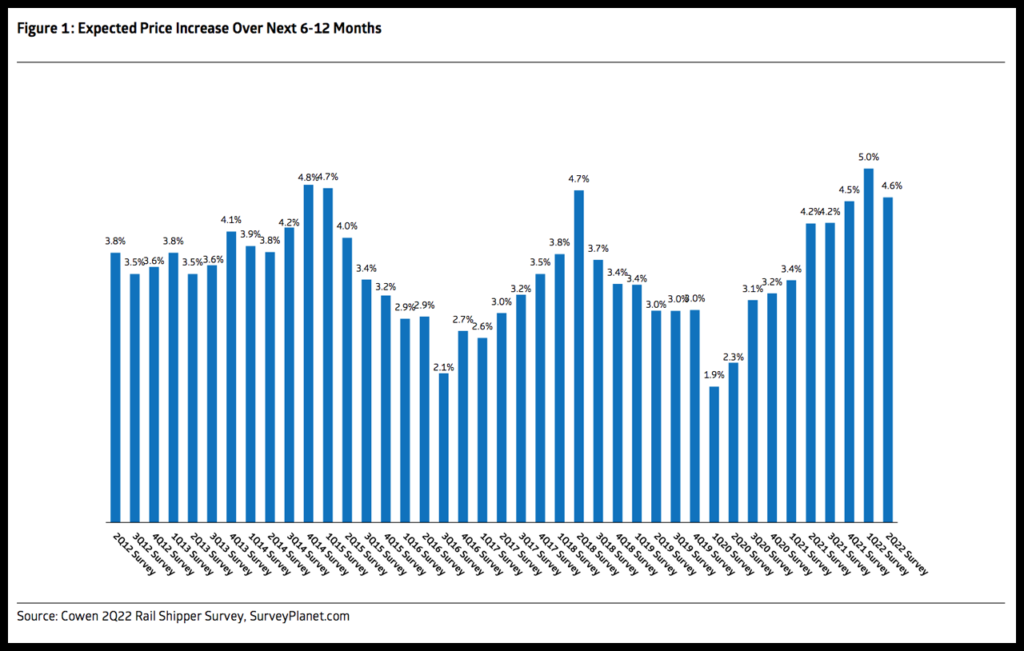 On a same-shipper basis, about 51% of same shippers in second-quarter 2022 said they will or may order railcars, compared with 40% in our first-quarter 2022 survey.