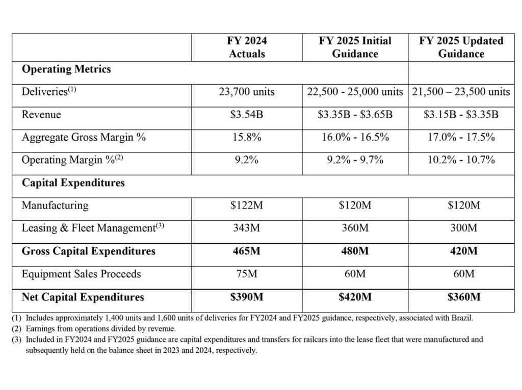 Based on “current trends and production schedules,” Greenbrier updated its guidance for fiscal 2025: