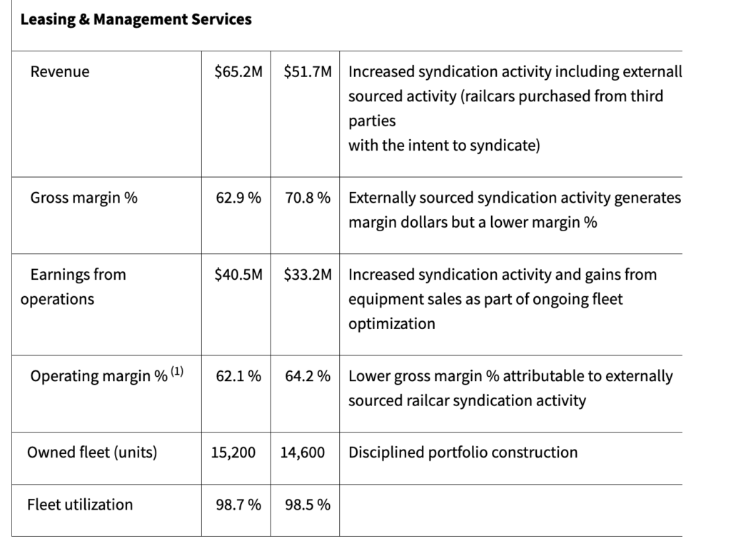 • Gross leasing investment of approximately $340 million in Leasing & Management Services, which includes 2024 capital expenditures and transfers of railcars into the lease fleet that were manufactured and subsequently held on the balance sheet in 2023.