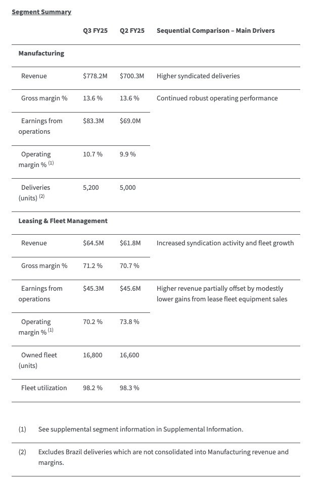 “Our aggregate gross margin percent continues to surpass our mid-teens long-term target,” Tekorius continued on July 1. “These results reflect our continued progress on operational initiatives across the business, including footprint optimization in Europe, insourcing expansion in Mexico, and disciplined execution in our Leasing & Fleet Management segment, which is steadily building recurring revenue.”