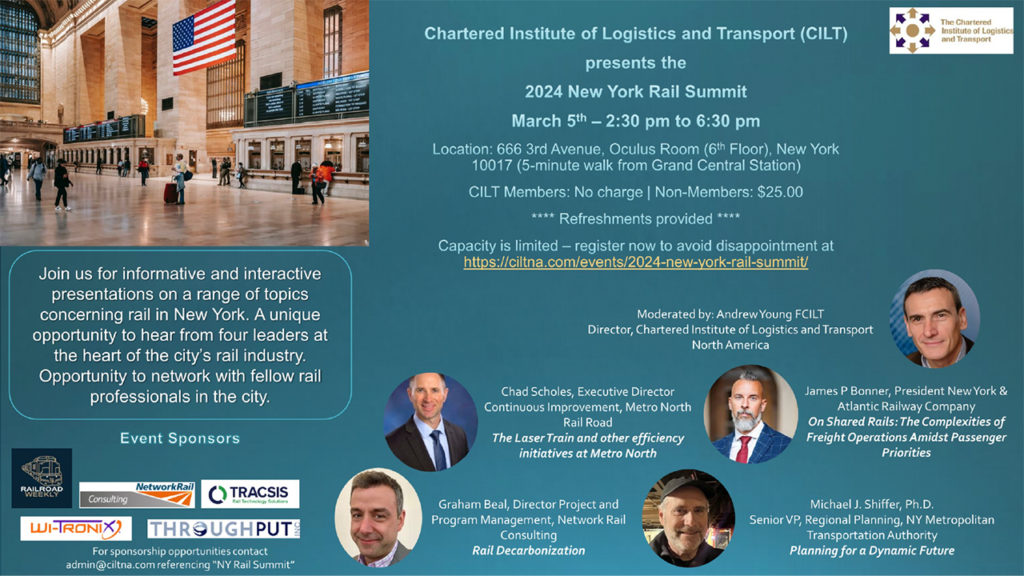 Rail professionals were recently treated to the inner workings of railroads in the New York City area. The half-day session, courtesy of the Chartered Institute of Logistics and Transport in North America (CILTNA), explored the challenges and opportunities in the region’s rail system at the New York Rail Summit on March 5, 2024.