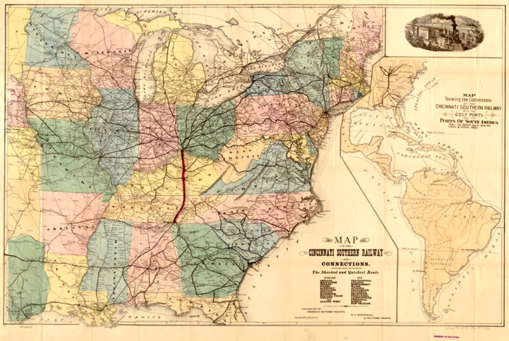 CSR was the only municipally owned main line railroad in the U.S. Established through a $10 million bond issue approved by Cincinnati voters in June 1869, it “became a dependable cash cow for the city after its operations were leased out in 1881 to the company that would eventually become Norfolk Southern,” FOX19 reported Dec. 20, 2022. “The route, in turn, has become one of Norfolk Southern’s highest density segments, with as many as 30 trains traversing it every day. NS President and CEO Alan Shaw called it ‘a critical artery linking the Midwest and the Southeast[…]’ and a ‘core line’ in the company’s network.”