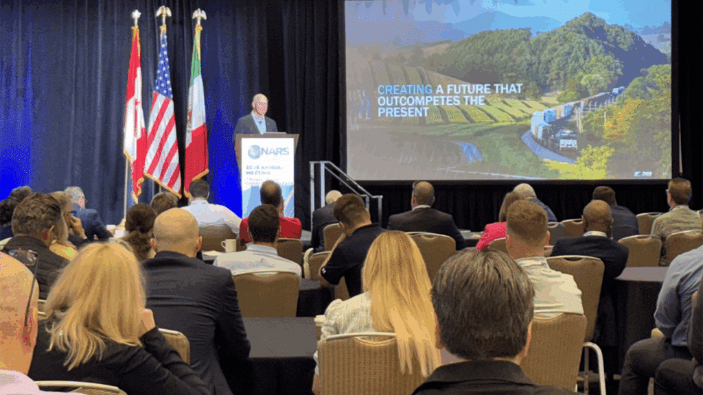 In 2024, NS system speed improved by 10%, with merchandise train velocity up 11% and unit train speed up 17%, according to NS. In first-quarter 2025, the railroad saw year-over-year gains across terminal dwell times, car velocity, and locomotive productivity. “We’re operating a safe, fast, and resilient network,” Elkins told NARS Annual Meeting attendees. “And we’re not stopping there.”