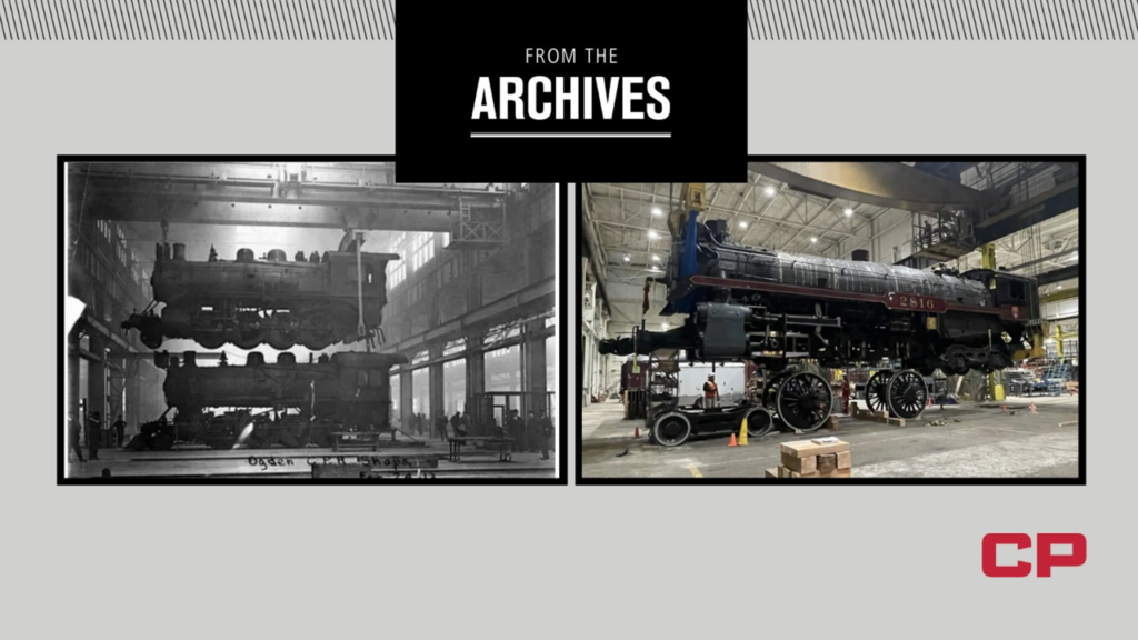 “Last week, CP 2816 [the Empress] was lifted off its drivers for work on its running gear: the first time a steam locomotive has been lifted at Ogden in 65 years,” CP reported via Twitter on Jan. 20. Steam locomotives were overhauled in CP’s Ogden shops in Calgary until 1957, before the shift to diesel-electric power, according to the Class I railroad.