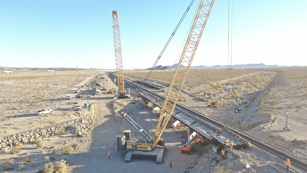 Given 60-hour windows over both weekends, the teams worked “round-the-clock” shifts near Fenner, Calif.—about 100 miles west of the Arizona border—and completed the work “slightly ahead of schedule,” the Class I reported via social media on Feb. 25. The new bridge, it noted, was replaced in two phases, one track at time, allowing about 150 trains to keep moving on the opposite track.