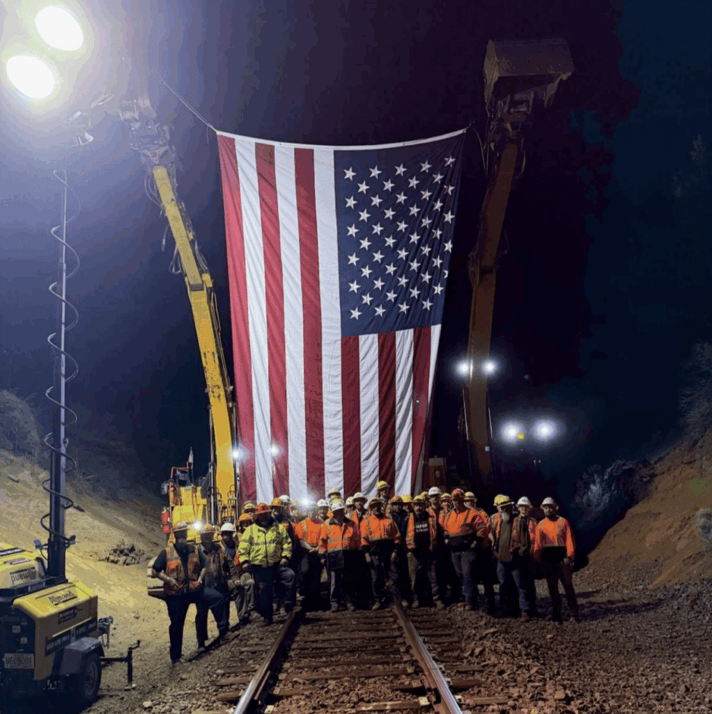 “Nice work, Engineering!” UP wrote in congratulatory social-media posts on July 11. The railroad reported that in less than 24 hours, employees removed, cleared, and installed more than 1,300 track feet; cut and installed track panels; laid fresh ballast; and surfaced the track during a tunnel renewal project on the Black Butte Subdivision near Dorris, Calif.