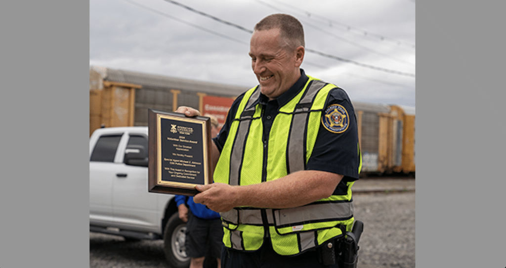CSX Police Special Agent Michael Johnson recently received the 2024 Volunteer Service Award from NYOL. This annual recognition, the Class I says, “highlights the outstanding dedication and impact of a single Operation Lifesaver, Inc. (OLI) Authorized Volunteer within the state.”