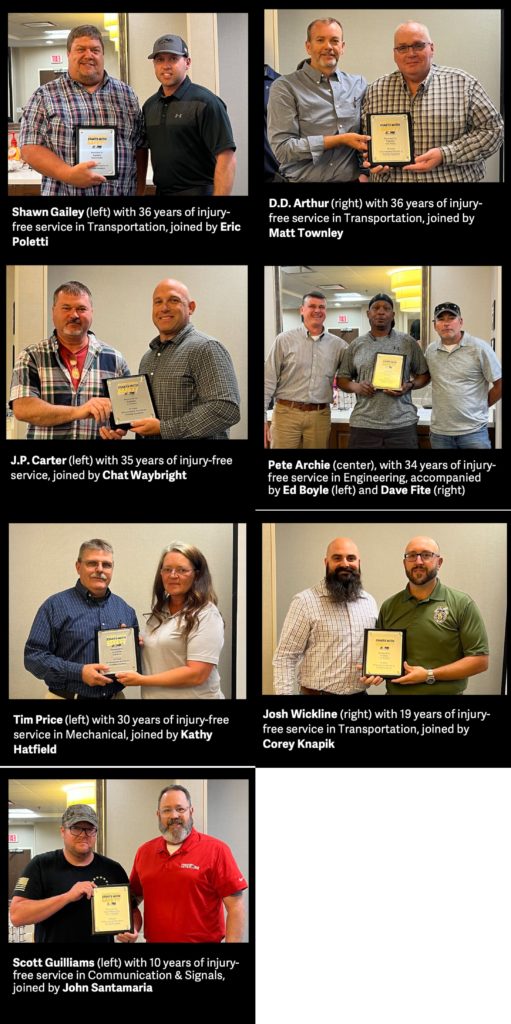 NS this fall recognized eight of its Blue Ridge Division railroaders who collectively have more than 230 years of injury-free service. All were honored during an awards luncheon in Roanoke, Va.