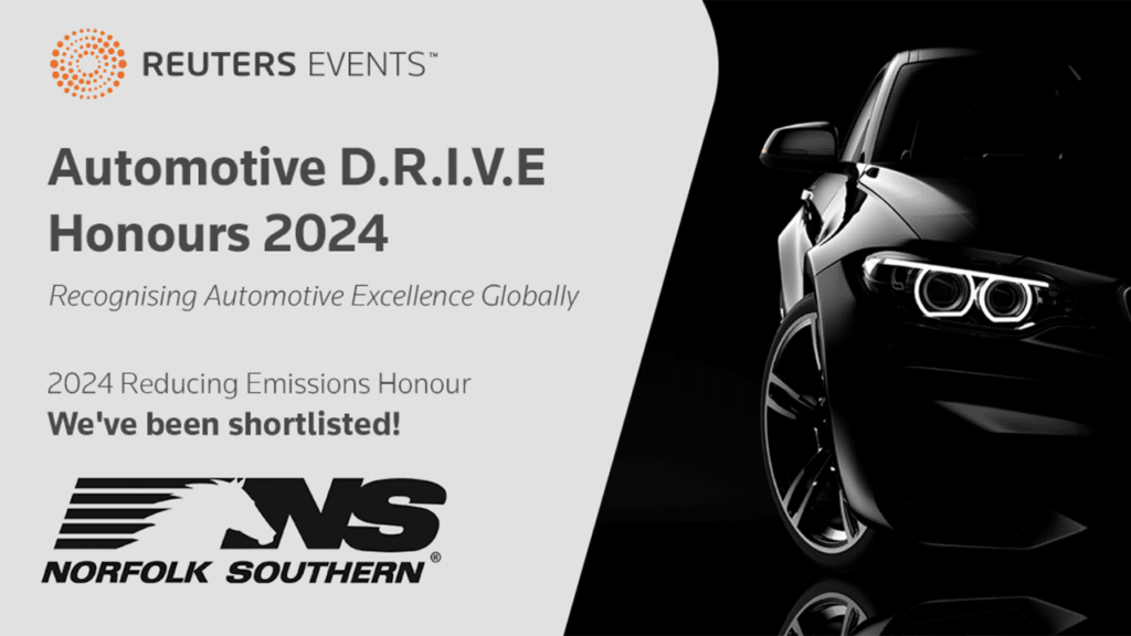 NS has been shortlisted for the 2024 Reuters Automotive D.R.I.V.E Honours awards program, which it said celebrates “innovation, commitment, impact and leadership within the automotive industry.” The railroad is one of 10 companies in the Reducing Emissions category; all are recognized for “driving sustainability, zero emission or net-zero goals.” NS is the only freight transportation company in the category’s shortlist, which also includes Ascend Elements, Fermata Energy, KPIT Technologies, Nissan Motor Corporation, Polestar, SK On, Tech Mahindra Ltd., UPM Biochemicals UPM Biofuels, and Vulcan Energy Resources. Only three of these companies will be selected for an award.