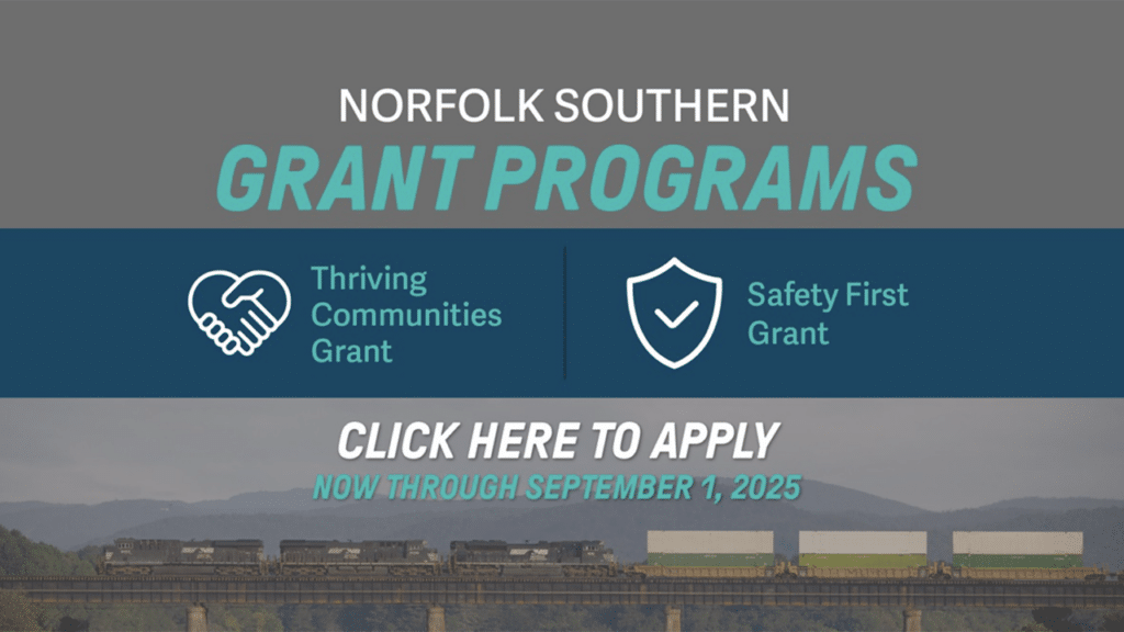 Tax-exempt nonprofits and government entities that “align with the pillars of Norfolk Southern’s community impact program: safety, sustainability, workforce development, and thriving communities” are eligible to apply, according to the railroad. Its Safety First grants go up to $15,000 and its Thriving Communities grants go up to $50,000.