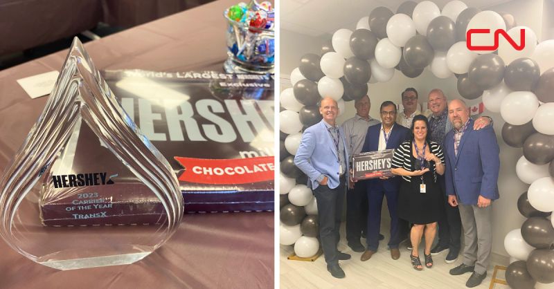 Separately, CN congratulated transportation service partner TransX Group of Companies via a LinkedIn post for winning the 2023 Hershey Carrier Award from The Hershey Company.