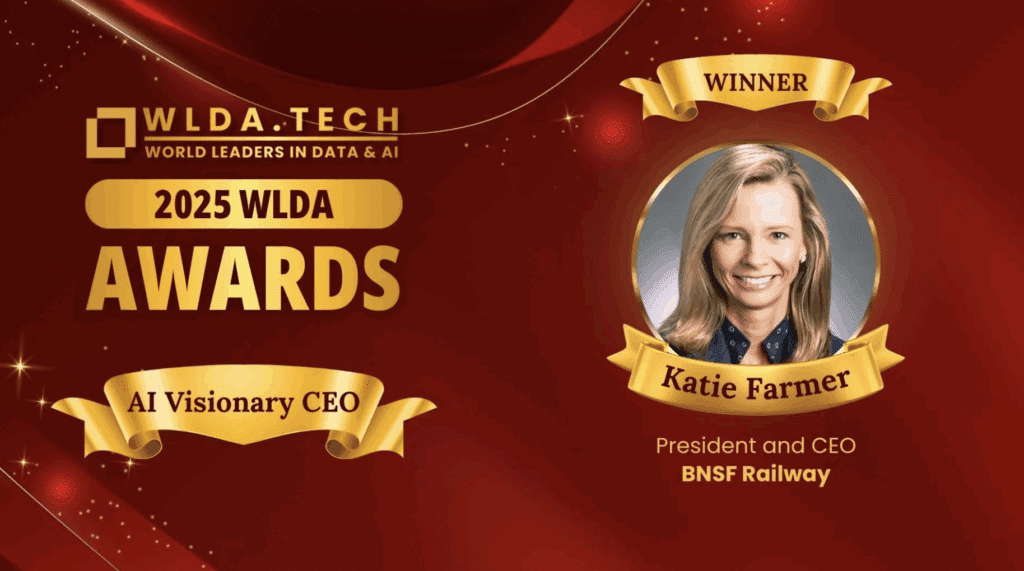 “A big thank you to the World Leaders in Data and AI (WLDA) for honoring our CEO Katie Farmer with the AI Visionary CEO of the Year Award this past weekend in NYC!” BNSF reported Nov. 10 via social media. “The WLDA Awards Gala celebrates exceptional leadership and measurable progress in responsible innovation, inclusion, and impact across industries. We’re proud to be recognized for our efforts in AI over the past few years. We hold the most patents than any other Class I railroad and continue to innovate to improve safety and service, increasing our focus on data and AI to enhance operational efficiency. As we embark on our massive technology transformation with bnsf | tech, we will keep leaning into change while looking at the future of railroading for our employees and our customers.”