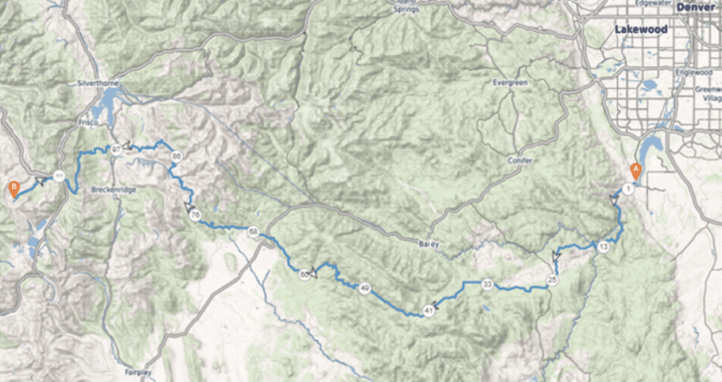 Hooper’s route started just southwest of Denver and continued through the Rocky Mountains, just past Breckenridge. (Courtesy of BNSF)