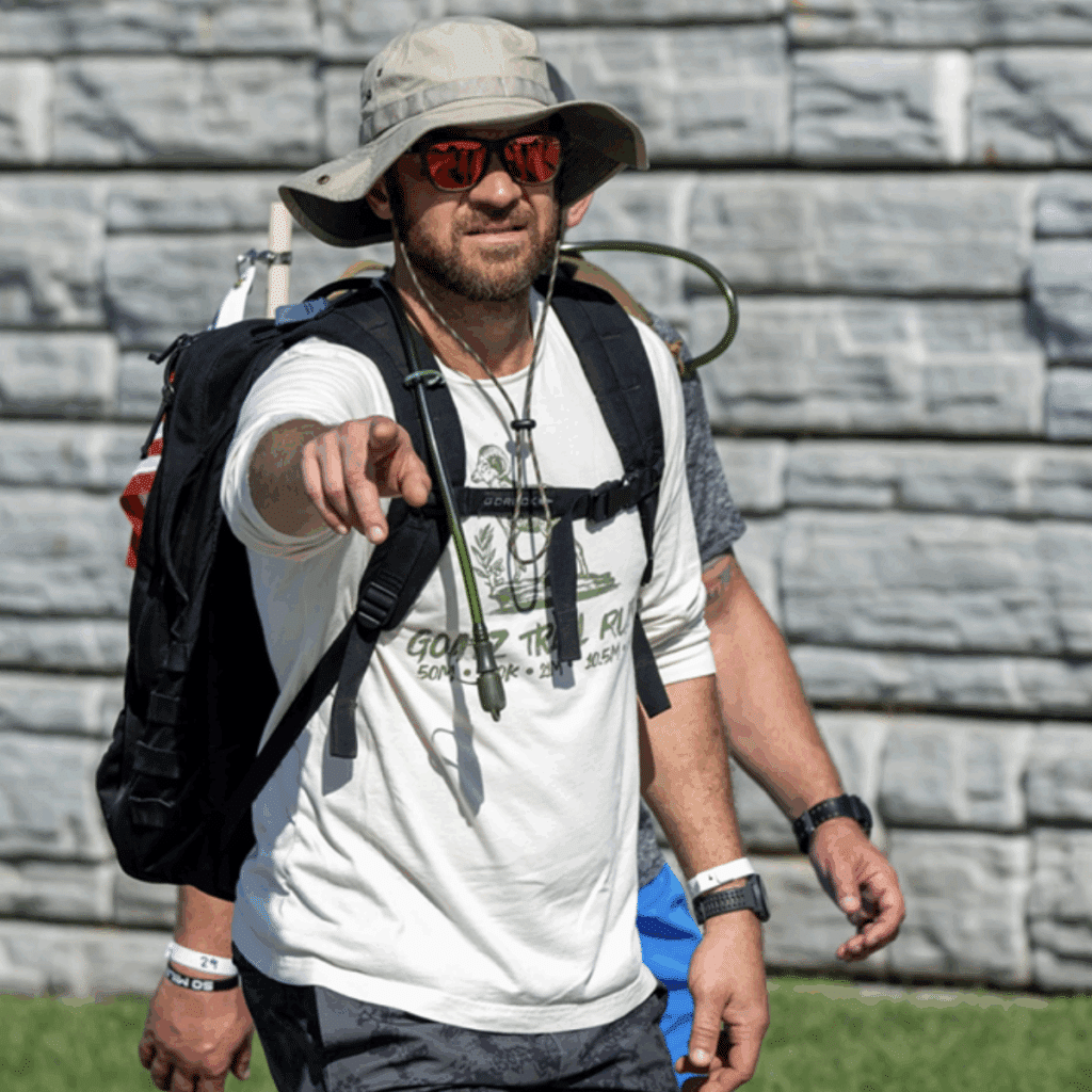 Diefenbaugh enduring the 50-mile march. (Courtesy of BNSF)