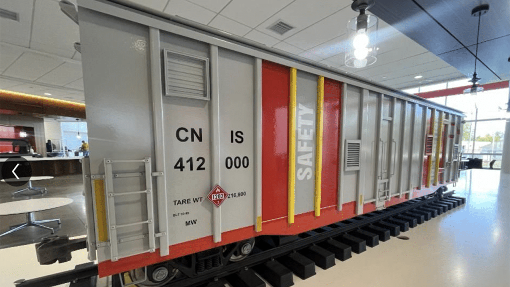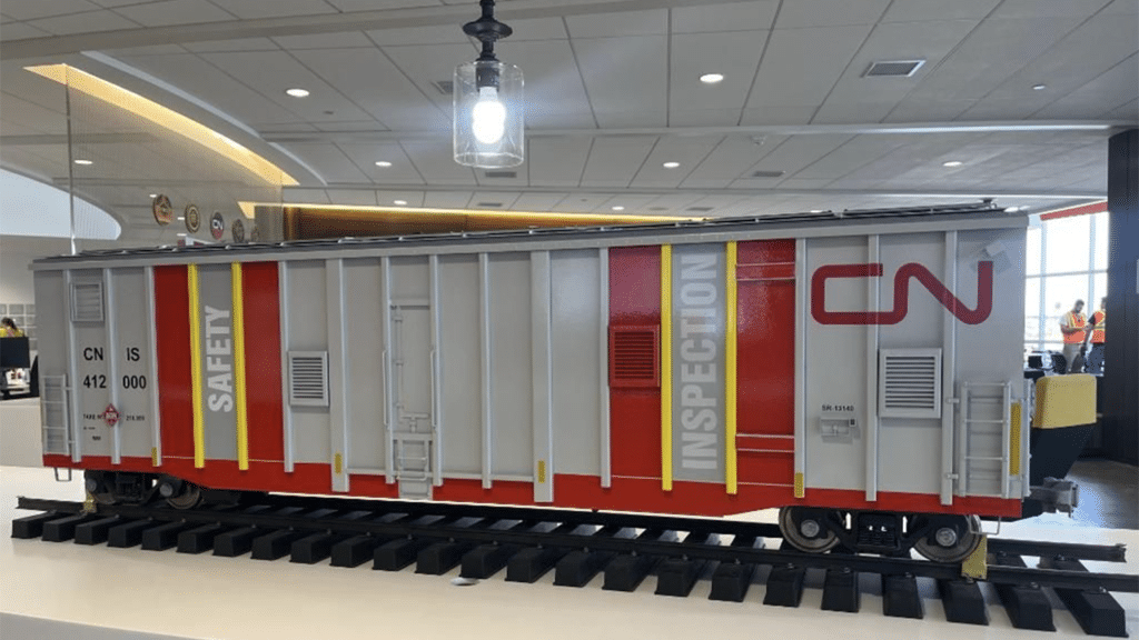 CN will be using two new scale models (above and below) of its Autonomous Track Inspection Program (AITP) cars for training purposes “to demonstrate our safety technology and showcase another avenue of how we keep our network running safely and efficiently,” the Canadian Class I reported Sept. 9 via LinkedIn.