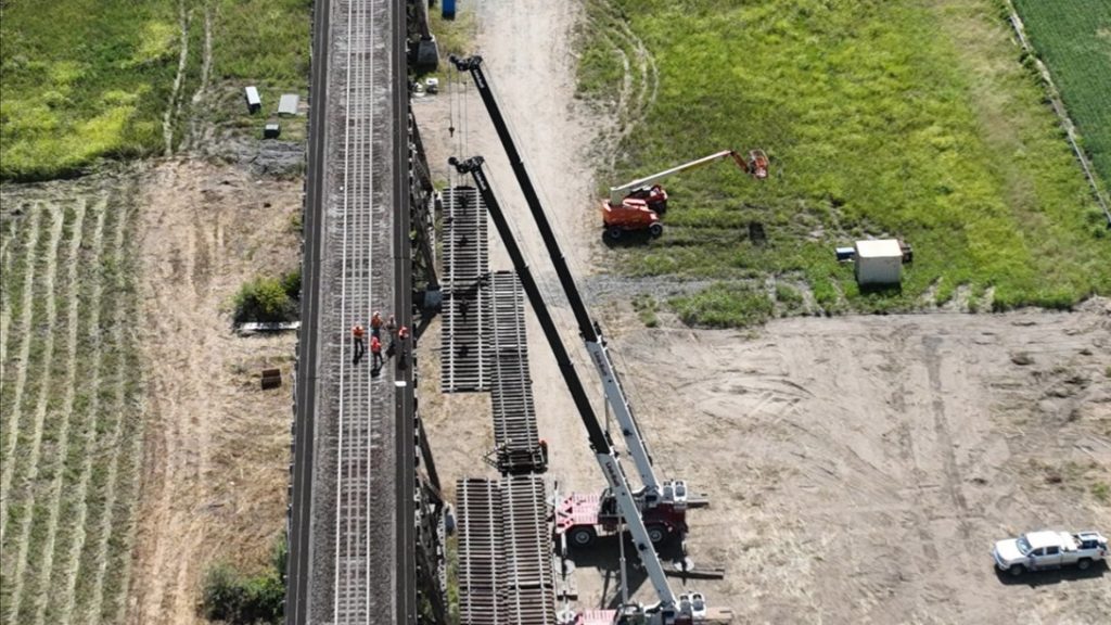 In a short window of time, BNSF teams replaced 23 track panels on the bridge, installed two turnouts (track configurations that enable trains to move from one track to another) and surfaced more than 2,000 feet of track.
