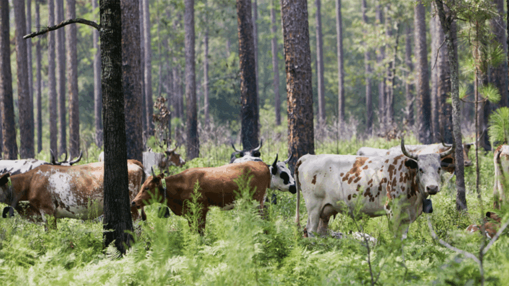 NS said its Pineywoods cattle “naturally clear excess brush and vegetation, reducing flammable material on the forest floor,” which allows forest managers to delay prescribed burns for up to two years, “significantly lowering carbon emissions while maintaining a balanced ecosystem.” The cattle also fertilize the land, which prevents the need for fertilizer usage.