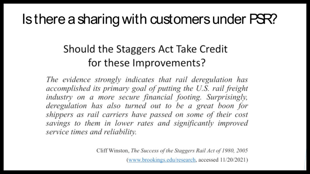 Did this happen to the railroad shipper and to the national economy as benefits beyond the railroads’ income statement and balance sheet? That’s tough to prove.