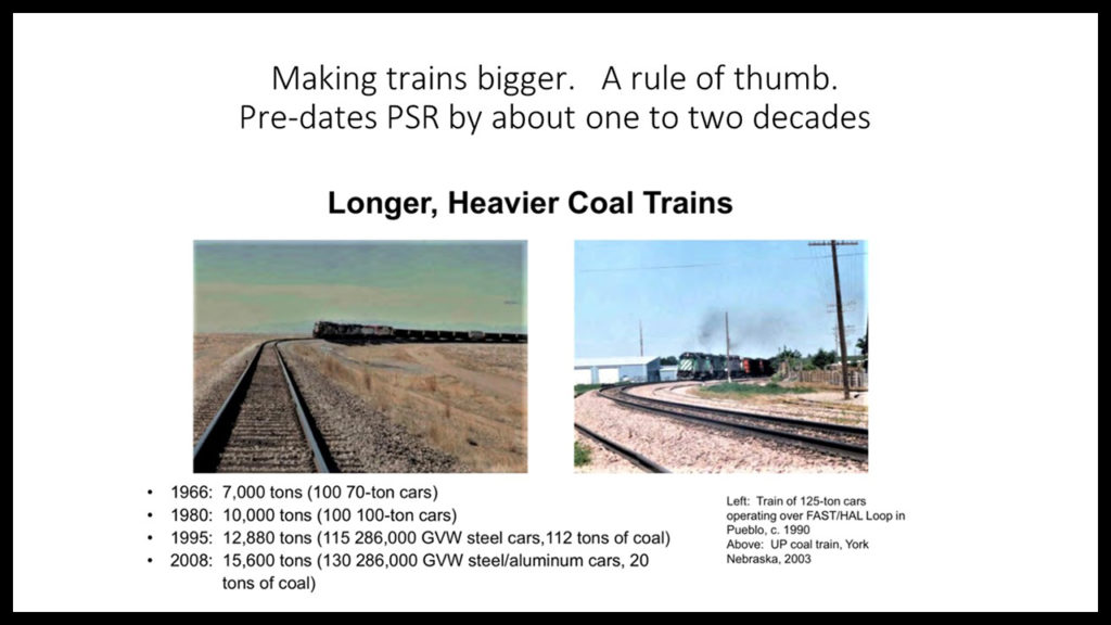 Longer PSR-generation trains are really not a new process or invention. We have seen this principle before. But to make heavier axle loads work, the railroads first improved the steel rail size and hardness and improved the depth of ballast and the supporting crossties and the bridges and turnouts (switches).