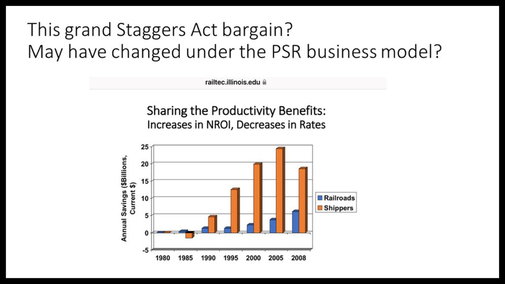 Shouldn’t PSR shippers be receiving by now the benefits rai executives proclaimed were coming? Shipper logistics cost benefits have been promised–but not yet delivered. Is that not a litmus test of fairness, a sharing as with the Staggers Rail Act? Or does this require new legislation? Now if true, that might really open up the question of reregulation. Why not instead try business negotiated solutions, using the STB as a broker or even an arbitrator?