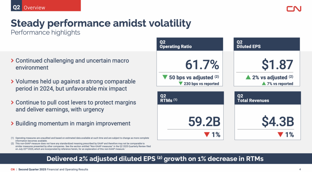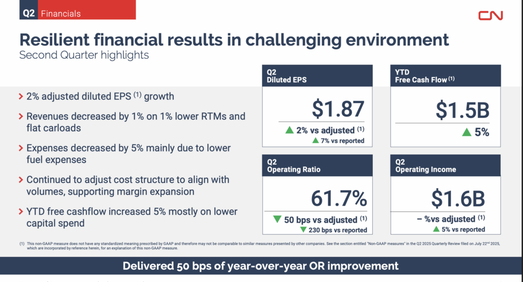 Among CN’s second-quarter 2025 results: