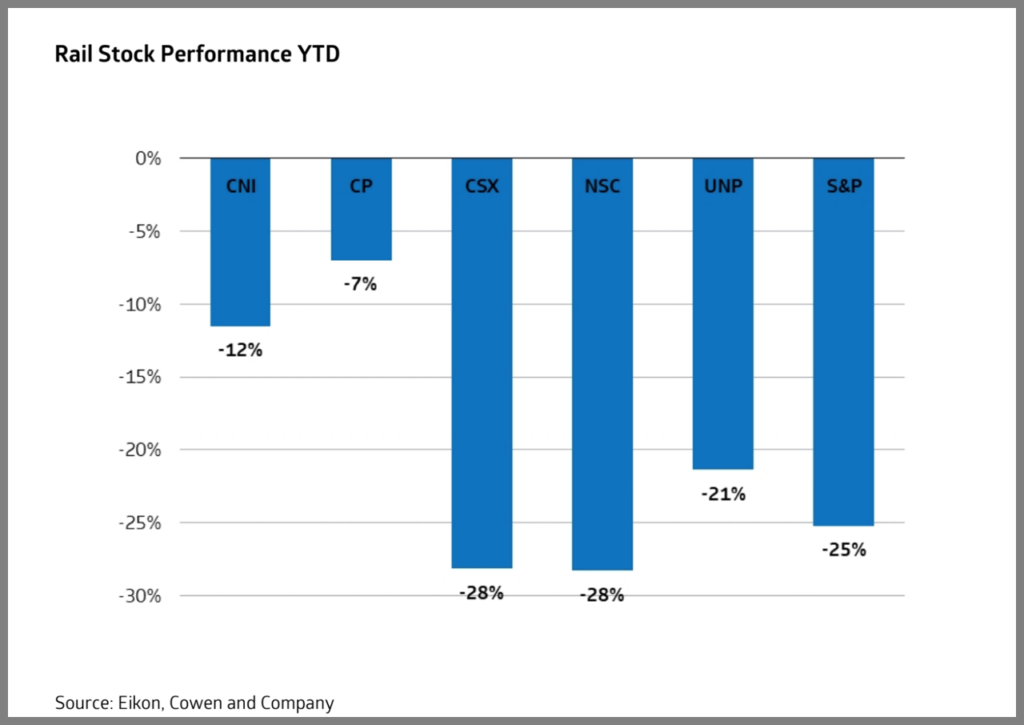 We feel the only negative to CP is that it is the best-performing Class I year-to-date, down just 7%, compared with the group average of -19%. We believe that U.S. investors have been taking shelter in Canadian names despite parallel macro pictures, which may warrant some near-term volatility.