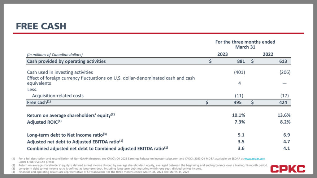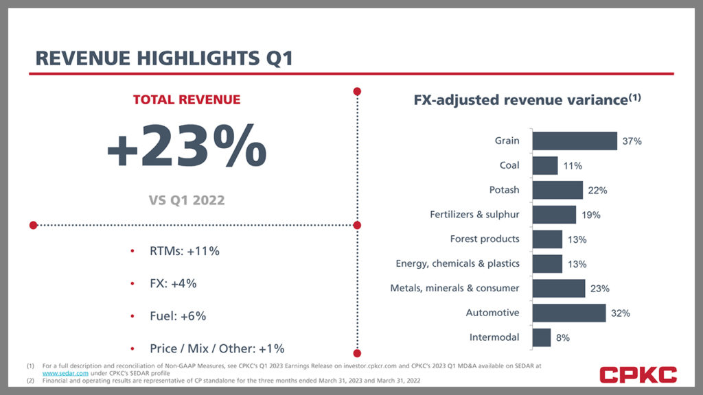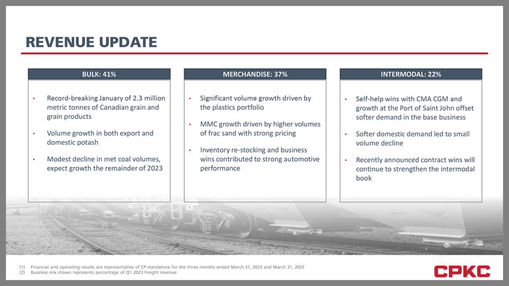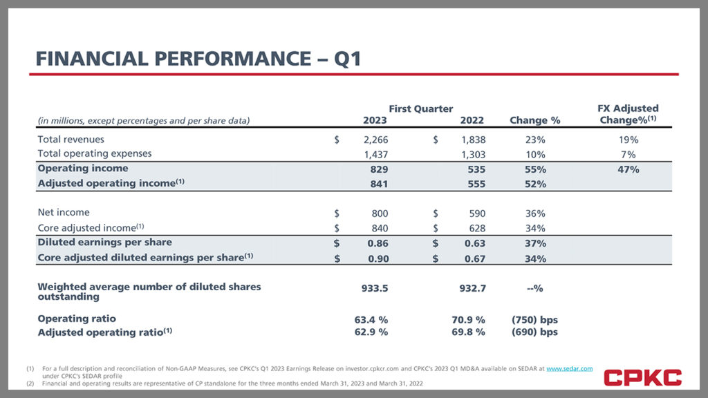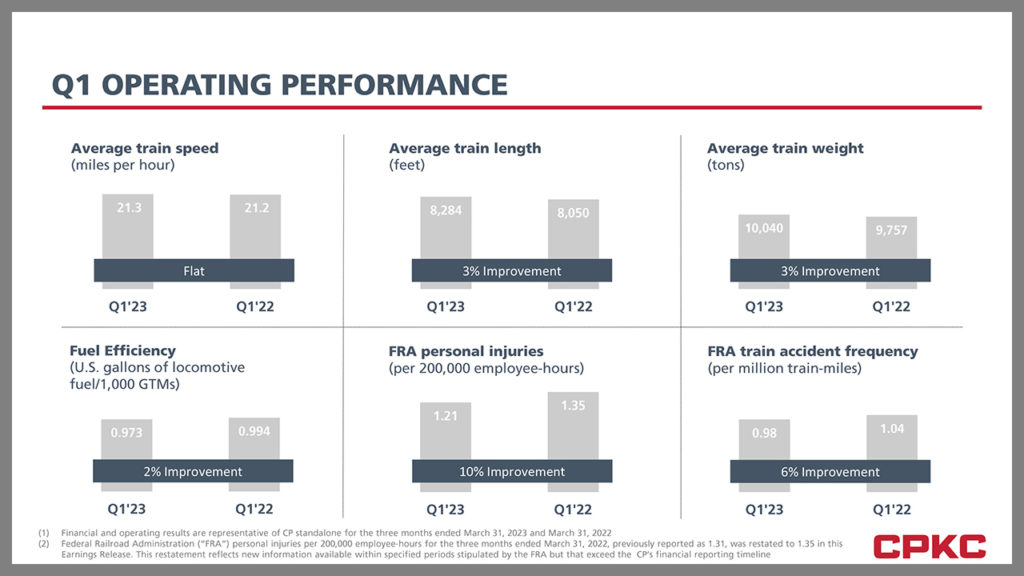 “In our final quarter before our historic combination, the CP team delivered solid results driven by our investment in capacity, service and continued focus on safety,” said Keith Creel, CPKC President and CEO. “Our strong bulk franchise, fueled by a robust Canadian grain harvest, plus competitive service offerings in intermodal, helped produce these results, providing momentum as we begin our journey as CPKC. Since we first announced our intention to combine CP and KCS more than two years ago, we never lost our conviction that a CP-KCS combination is right for our railroaders, our customers, our stakeholders and the North American economy. We are excited to have united the talented railroaders at CP and KCS to form our new CPKC family and are working to deliver on the synergies and countless benefits the combined company will produce.”