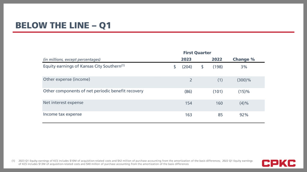 CPKC’s unaudited Interim Consolidated Financial Statements “do not include Kansas City Southern (KCS) and its subsidiaries on a consolidated basis but continue to account for KCS using the equity method while the outstanding shares of KCS were held in a voting trust,” CPKC noted. For complete details, download the report: