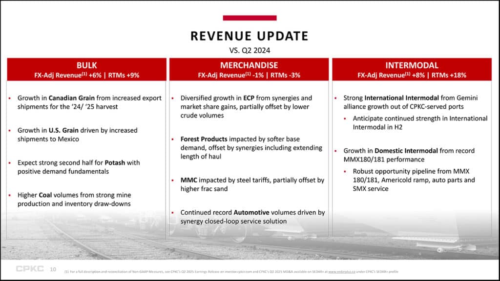 “Our dedicated team pulled together to overcome challenges in portions of our southern U.S. network following our complex [information technology] system integration,” said Creel. “Across our network, we are focused on delivering the service our customers expect as we carry growing momentum into the second half of 2025. We are executing our strategy by capitalizing on a range of opportunities unique to our three-nation network, opportunities to grow our business by supporting our customers in reaching new markets. Looking ahead, we remain confident in our ability to deliver on our full-year guidance while realizing sustainable growth that provides value for our shareholders, customers and all stakeholders.”