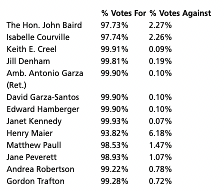 Final voting results on all matters voted on at the annual meeting will be filed on SEDAR and EDGAR.