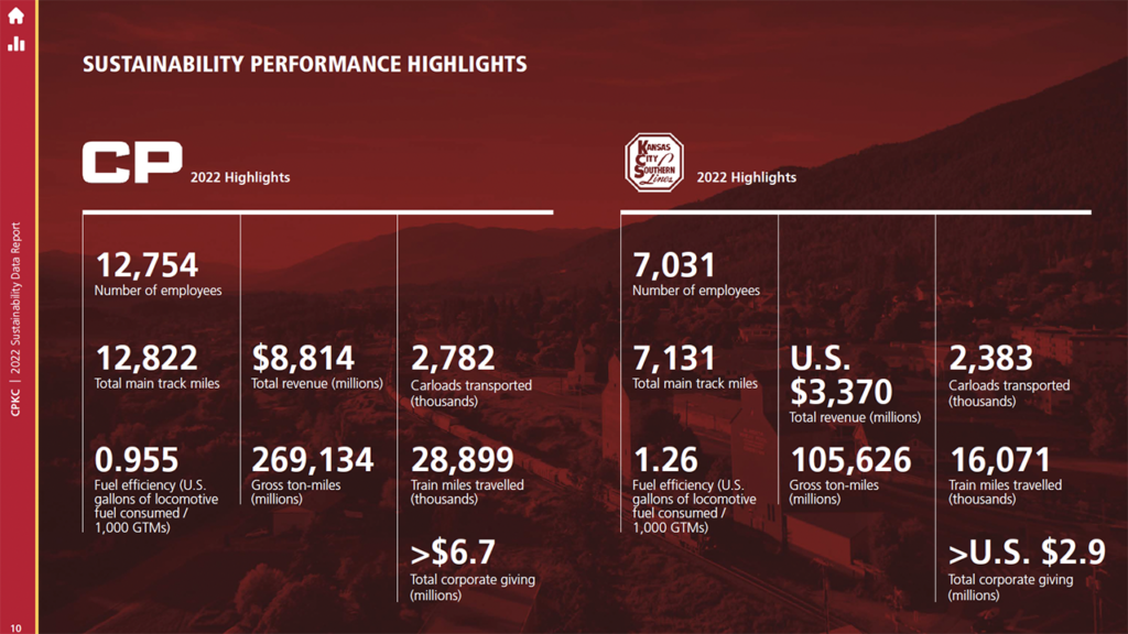 Canadian Pacific Kansas City (CPKC) on June 23 published its first Sustainability Data Report highlighting developments from 2022 for Canadian Pacific (CP) and Kansas City Southern (KCS), which on April 14 merged to become CPKC, the first single-line, transnational railway connecting Canada, the U.S. and Mexico.