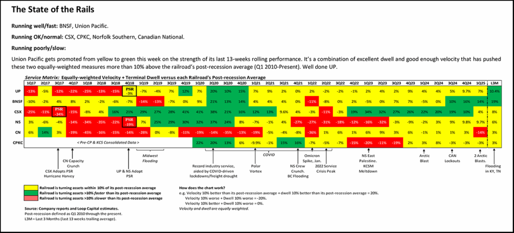 Other relevant data includes cars online specific to CPKC’s U.S. territory, which has drifted down (improved) from 61,000 to 59,000 in recent weeks, so again directionally encouraging but underwhelming in terms of magnitude.