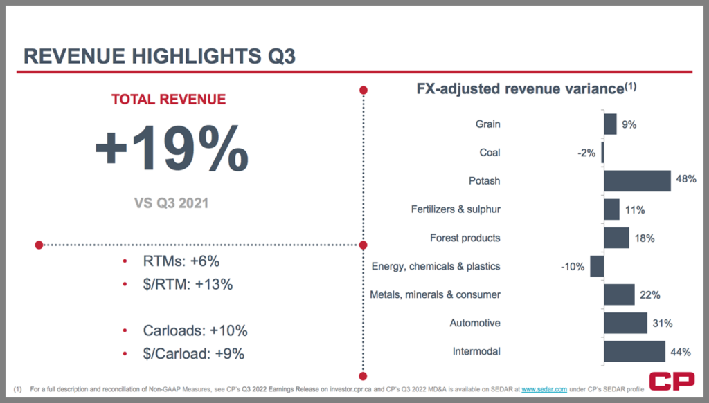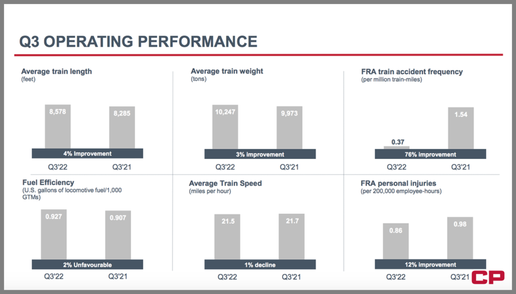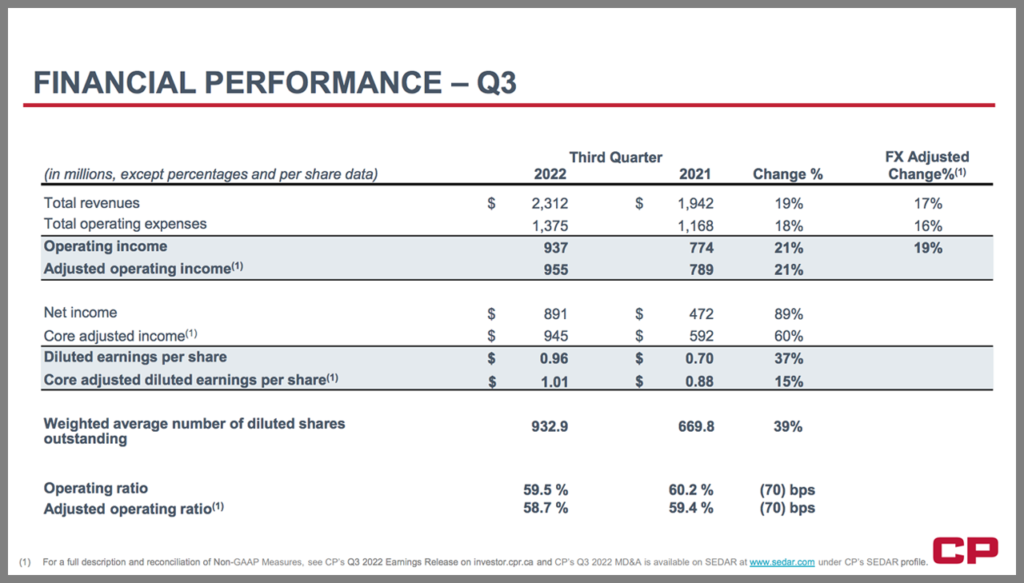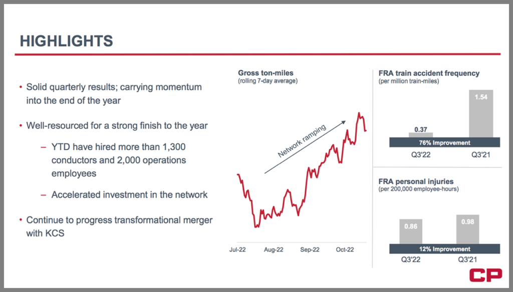 Among CP’s third-quarter 2022 highlights: