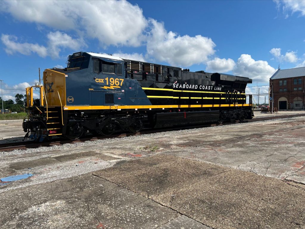 The locomotive, CSX No. 1967 (recognizing SCL’s founding year), is the fourteenth in a series of heritage locomotives to roll out of the shop as a “way of reinforcing employee pride in the history of the railroad” and sharing it with the public.