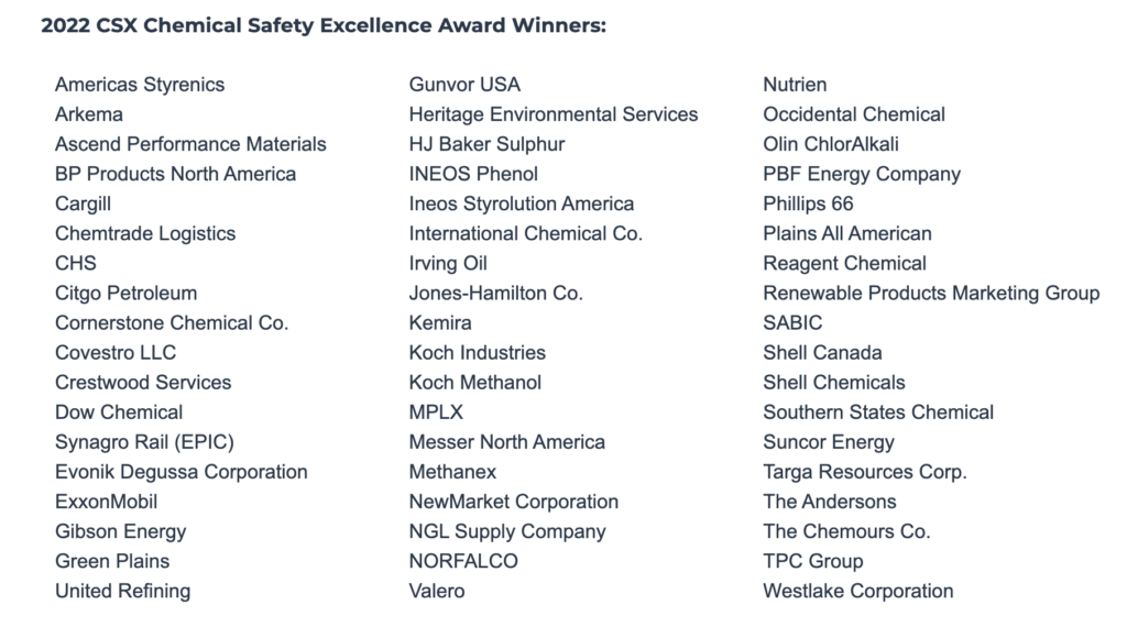 CSX Announces 2022 Chemical Safety Excellence Award Winners