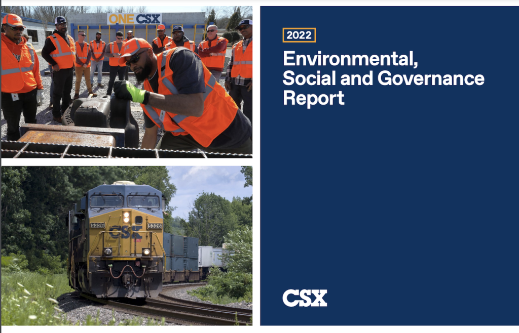 The report (download below) was prepared in accordance with leading ESG disclosure frameworks, including the Global Reporting Initiative (GRI) 2021 Universal Standards, the Sustainability Accounting Standards Board (SASB) Rail Transportation standards and the Task Force on Climate-related Financial Disclosures (TCFD), according to CSX.
