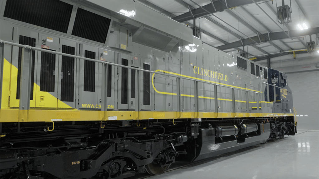CSX President and CEO Joe Hinrichs on LinkedIn revealed CSX ES44AH No. 1902—a tribute to Clinchfield Railroad—fresh out of the Class I’s paint shop in Waycross, Ga.
