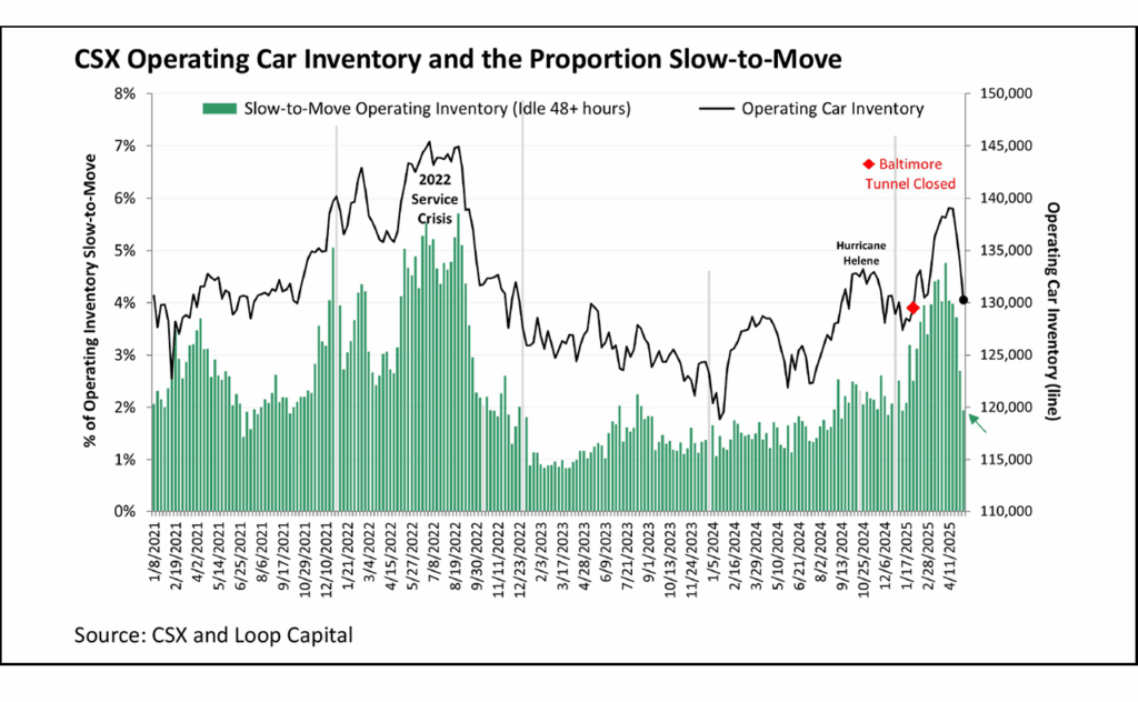 More good progress from CSX, as it continues to rebound from the early April trough in operational efficiency.