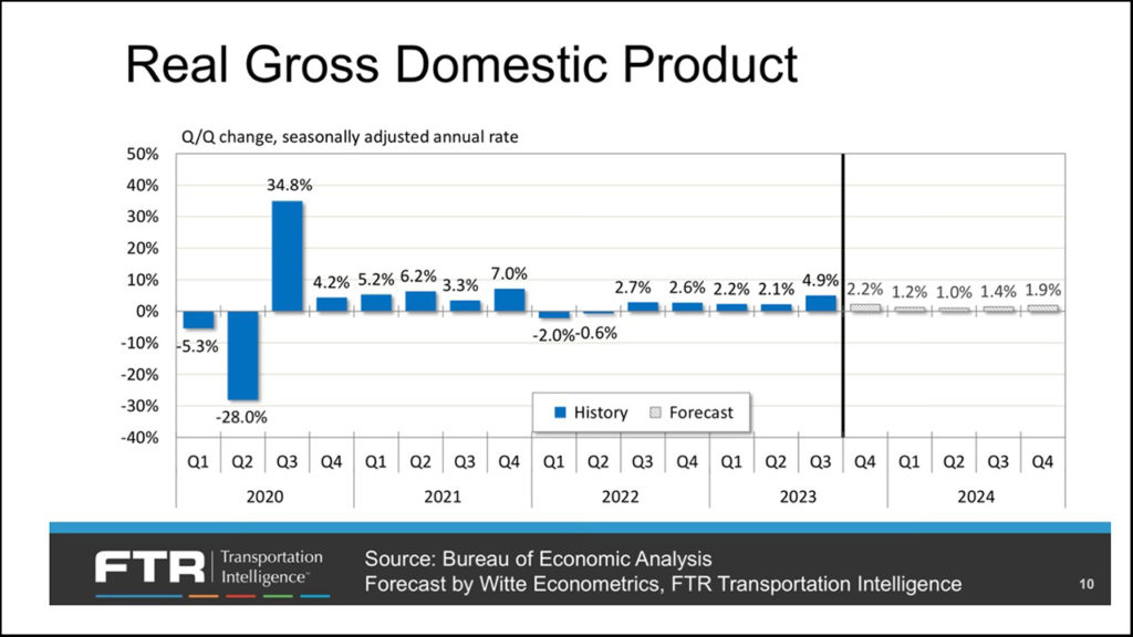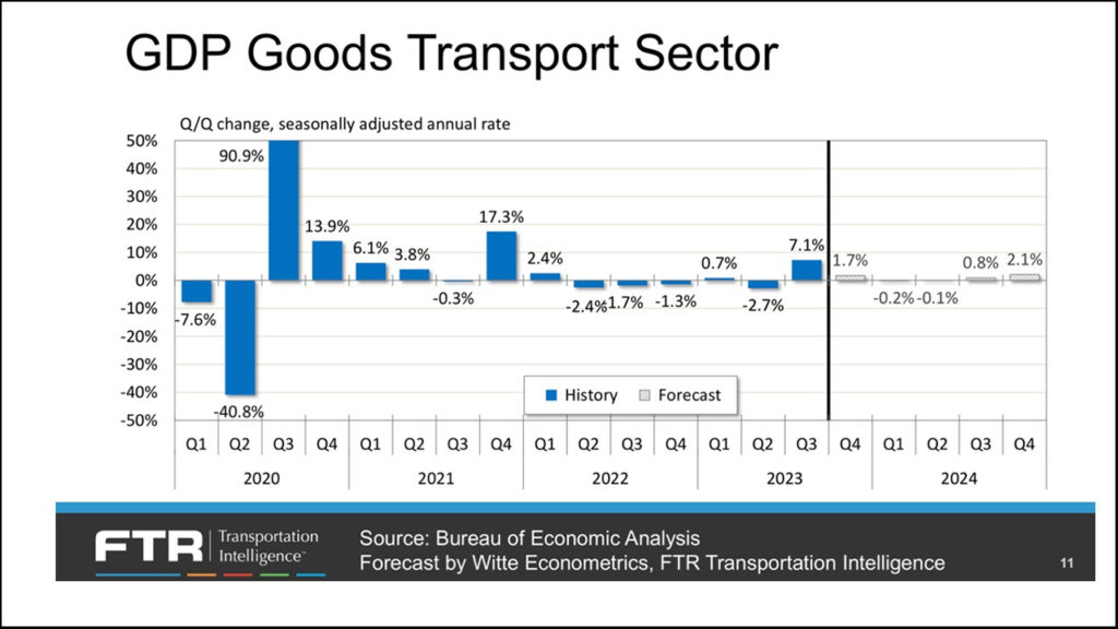 There are some slowdowns ahead into perhaps the third quarter of 2024, even for the goods movement segment of GDP as shown on FTR’s next slide I consider important: