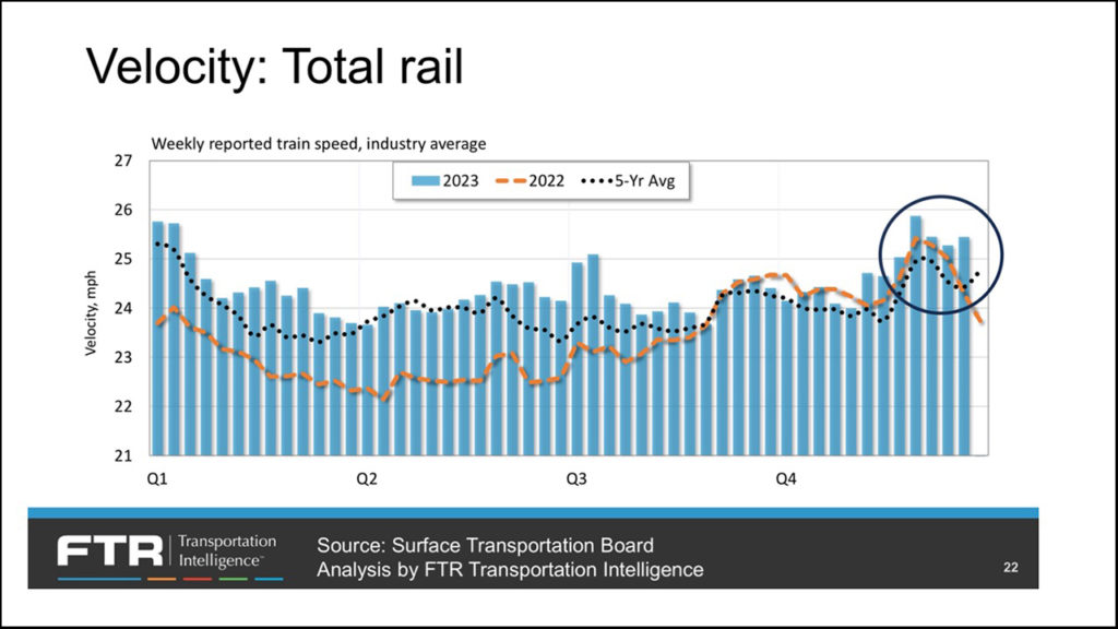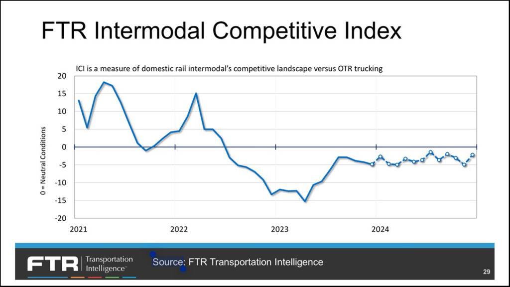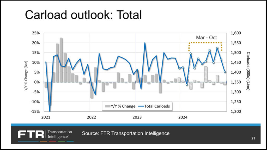 FTR Transportation Intelligence freight rail experts recently hosted a seminar as to how they see the year 2024 developing. They are one of about six independent professional groups that I study closely to pick up selective and interesting intelligence about market demand and market supply as a railway guy. I share my views with others such as Railway Age readers.