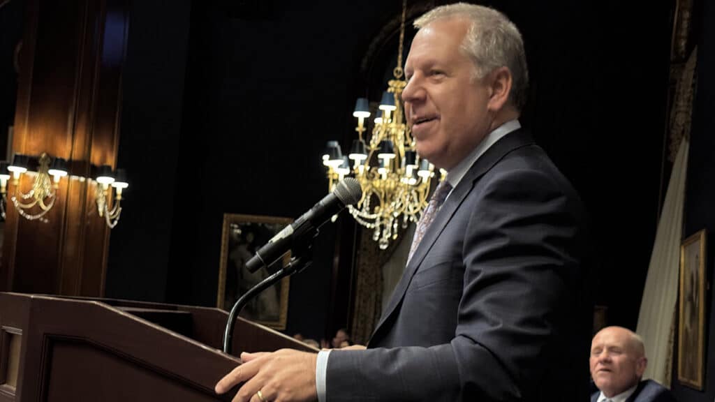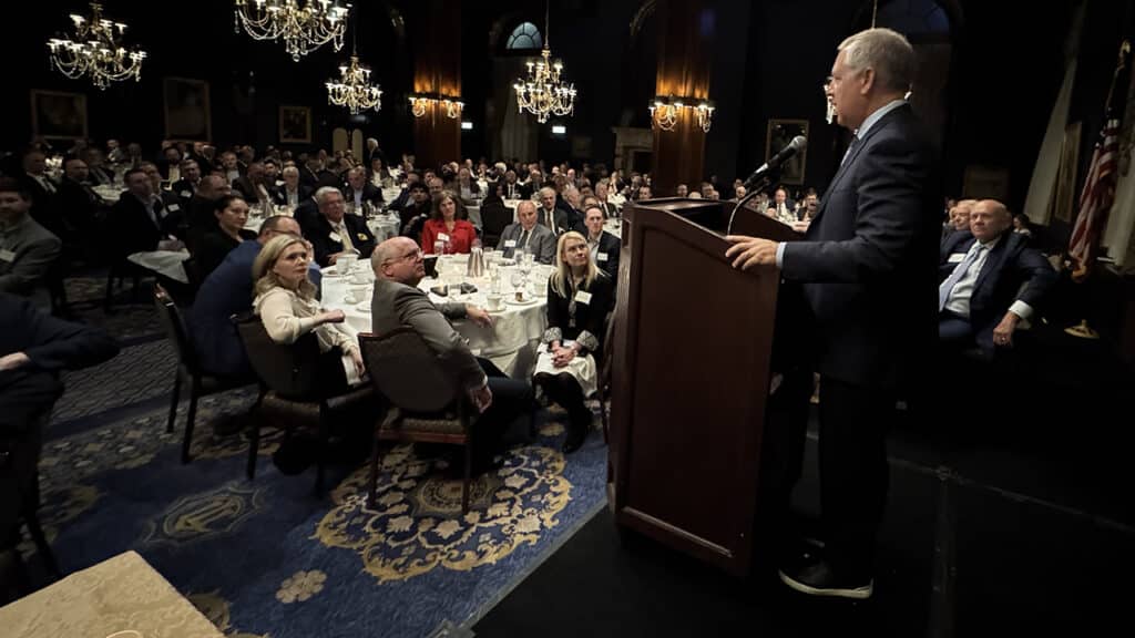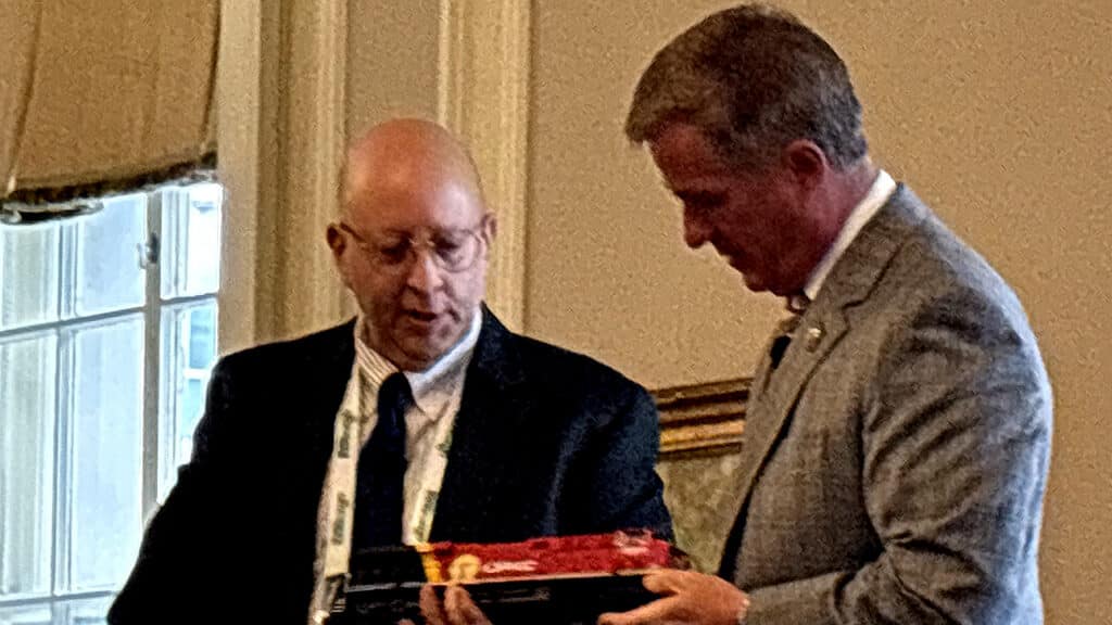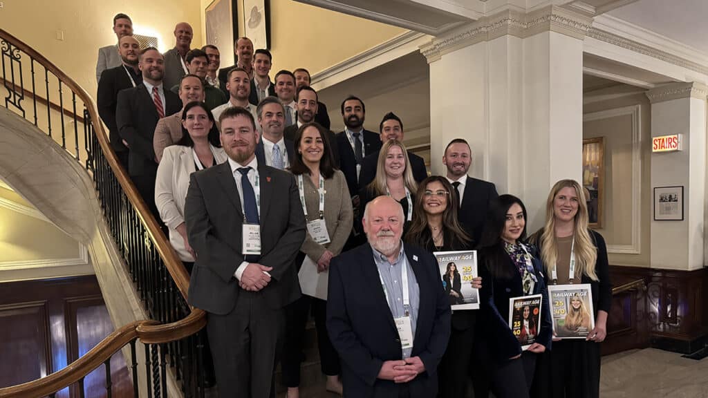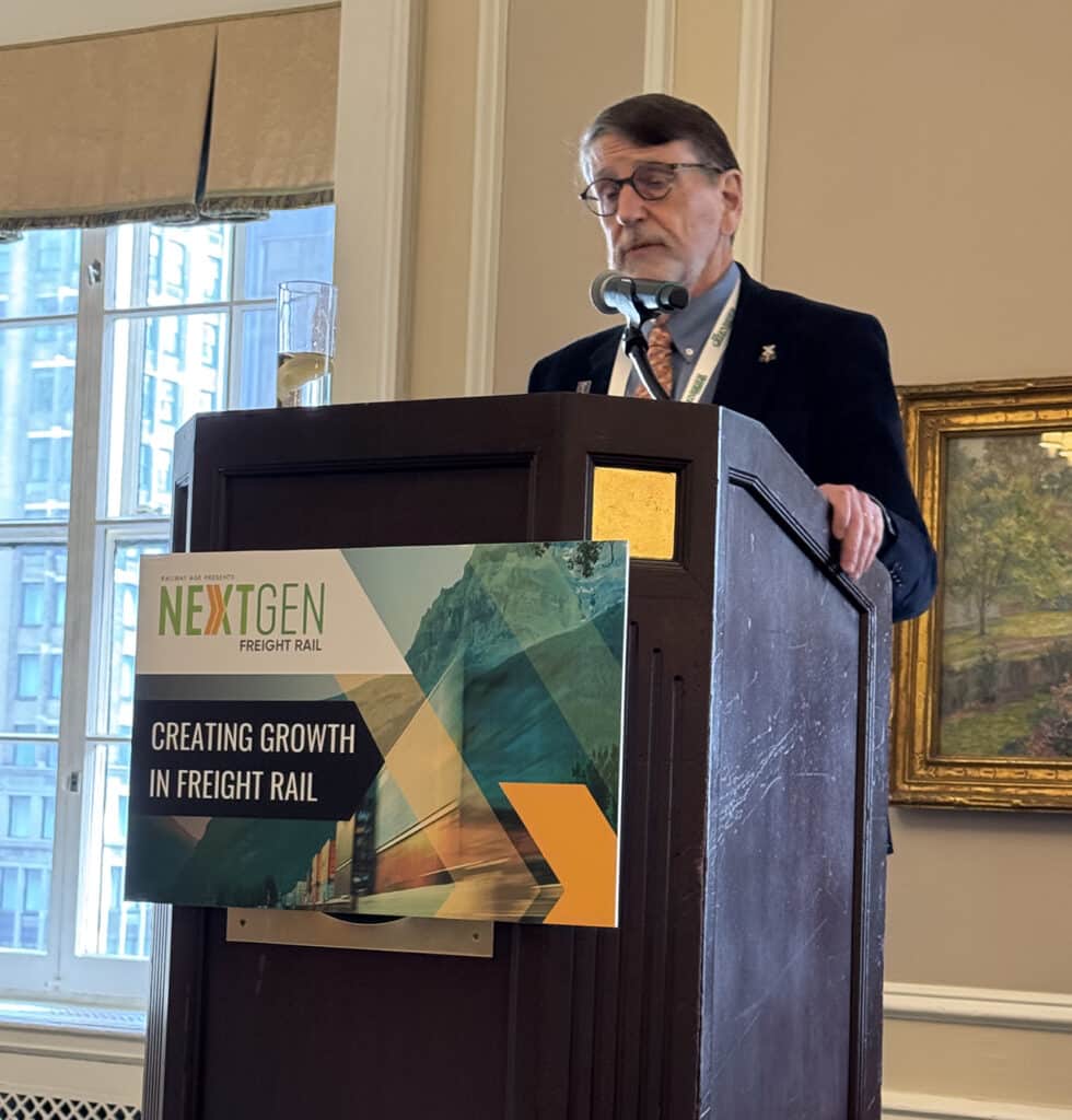 2025 Railroader of the Year Joe Hinrichs addresses the sold-out dinner at the Union League Club of Chicago.2025 Railroader of the Year Joe Hinrichs.Canadian Pacific Kansas City President and CEO Keith Creel joined Railway Age Editor-in-Chief William C. Vantuono in a leadoff fireside chat at the Next-Gen Freight Rail Conference. At the conclusion, Vantuono presented Creel with an O scale ES44AC. Manufactured by MTH, the locomotive, licensed by the railroad and commissioned by The Train Doctor of Eatontown, N.J. with Vantuono’s assistance, is the first model of its type in CPKC’s new livery. Christopher P.L. Barkan, Ph.D., Executive Director, RailTEC and The National University Rail Center of Excellence, University of Illinois at Urbana-Champaign, gave a presentation on Long-Train Safety Research Initiatives.Engineering Excellence at G&W: Jeffrey Watson, Vice President Engineering, Genesee & Wyoming, and Railway Track & Structures 2024 Engineer of the Year with RT&S Editor-in-Chief David C. Lester.Most of Railway Age’s 25 Under 40 honorees for 2025 were able to attend a luncheon held during the Next-Gen Freight Rail conference, where they were recognized. Judge Nick Little, who recently retired as Director of Railway Education – Center for Railway Research & Education (CRRE) at Michigan State University.