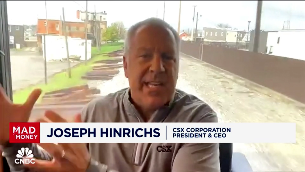 Hinrichs spoke to Cramer from the theatre car (rear observation) of CSX’s business train, on an inspection trip in Ohio. View the Mad Money segment featuring him.