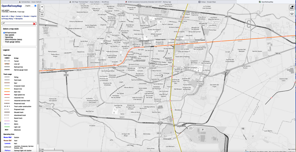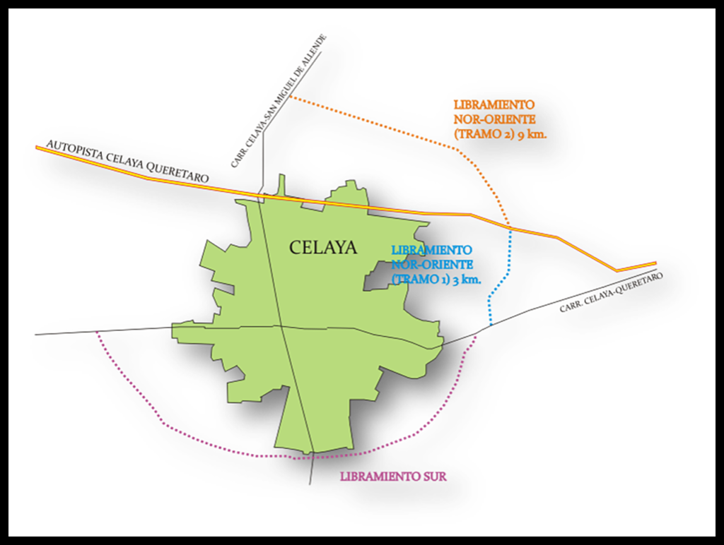The Celaya Bypass project, also known as Ferroférico, will comprise two routes around Celaya city in Guanajuato State and replace the ones that intersect the urban area, eliminating 15 grade crossings and saving 80 minutes of transit time. Construction is expected to begin by the end of this year.
