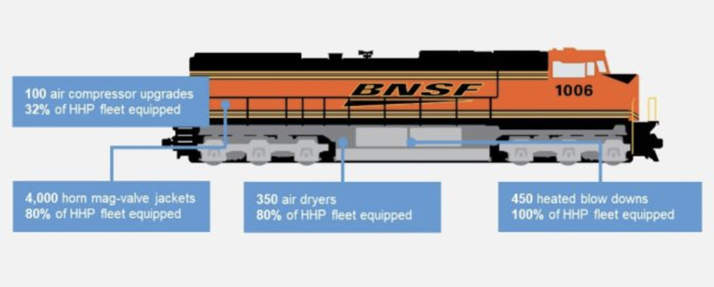 “In winter, trains are at higher risk for airbrake-related issues as colder ambient temperatures increase the potential of freezing any moisture present in compressed train line air,” said Abid Raza, BNSF General Director of Locomotive Maintenance and Reliability.