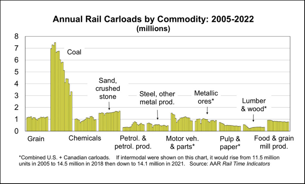 Hatch noted the recent railroad labor agreements and West Coast strike settlement are important because these developments guarantee a future income stream for railroads. Truck diversion is out there, but some of the future rail growth is to come from carload vs. carload diversion competition. He is hopeful that the railroads will return to trying out more interchange partnerships to push for growth, something “they used to do more often.” As well, the railroads seem to be backing away from T&E labor reductions to have the people needed to operate trains as traffic levels hopefully rise.